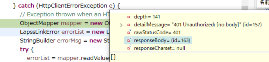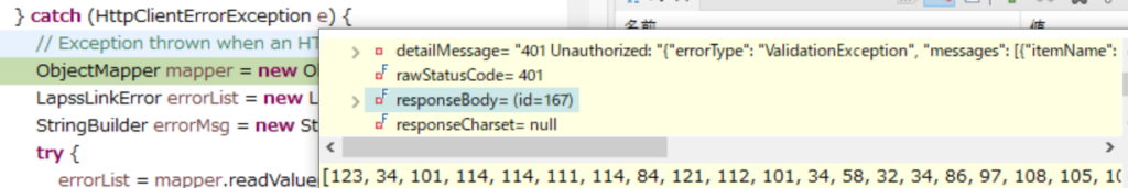 【Spring】RestTemplate のレスポンスが 401の時に response body が取得できない?