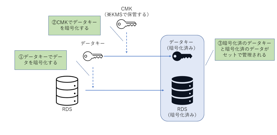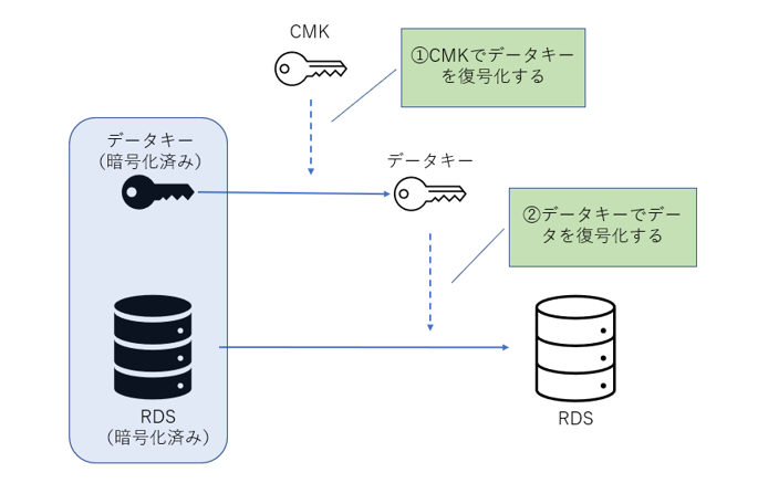 RDS暗号化及び復号化する際の処理は下記の図の通りです。