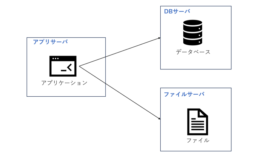 ビジネスの拡大に伴い、1 台のサーバーでは徐々に性能要件を満たせなくなります。アクセスするユーザーが増えるとパフォーマンスが低下したり、データ量が増えるとストレージ容量が不足したりすることがあります。このとき、アプリケーションとデータを分離する必要があります。アプリケーションとデータが分離された後、図 1.2 に示すように、Web サイト全体ではアプリケーションサーバー、ファイルサーバー、データベースサーバーの 3 つのサーバーで構成されます。